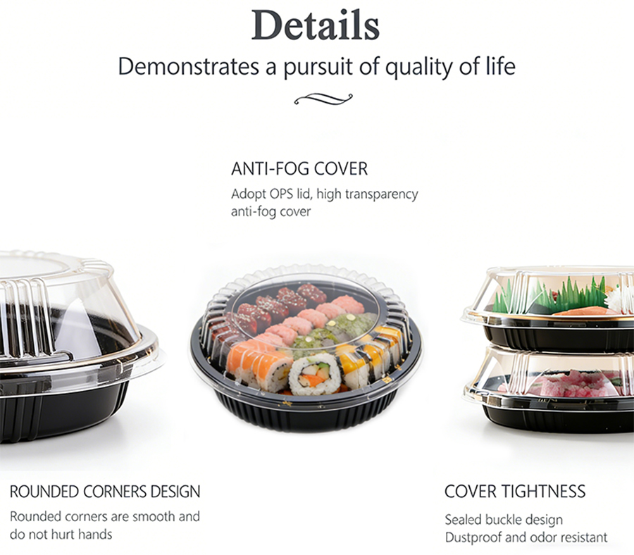 BlissPak offers OEM sushi trays designed specifically for food businesses looking to stand out. We provide custom plastic sushi packaging tailored to your exact specifications, whether you need unique sizes, compartment layouts, or branding elements. Made from food-grade PET material, our trays ensure freshness and safety for sushi rolls, nigiri, and sashimi. Ideal for restaurants, caterers, and takeout services. Competitive wholesale pricing with flexible MOQs. Partner with BlissPak for reliable, customized packaging solutions that elevate your brand and delight your customers.